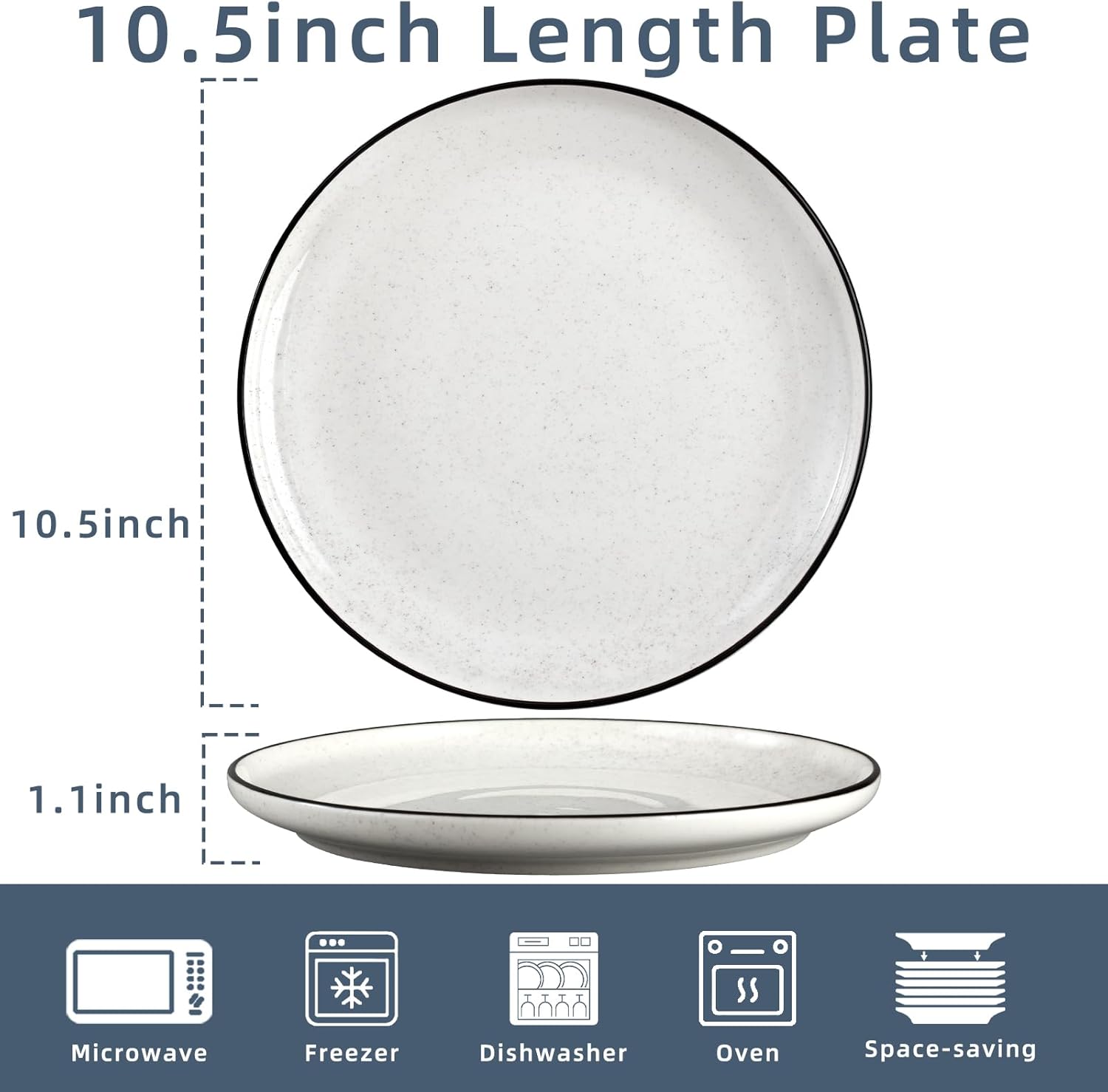 • 10.5-inch Shallow Plate: 10.5-inch spacious plate with shallow edge design for easy food taking, suitable for steak, pasta, breakfast platter, etc. The bottom groove has an anti-slip design and can be stacked for storage to save space.