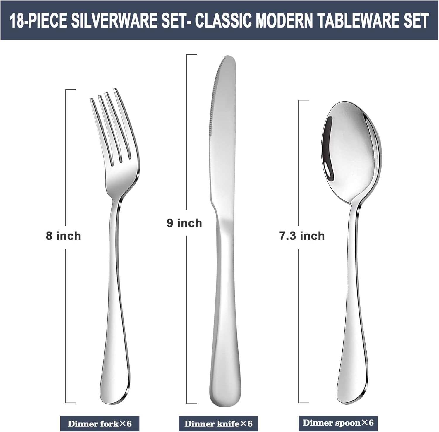 Silverware Set, Stainless Steel Knives Spoon Forks Set for Home, Kitchen and Restaurant, Mirror Polished& Dishwasher Safe (18pcs Silverware set)