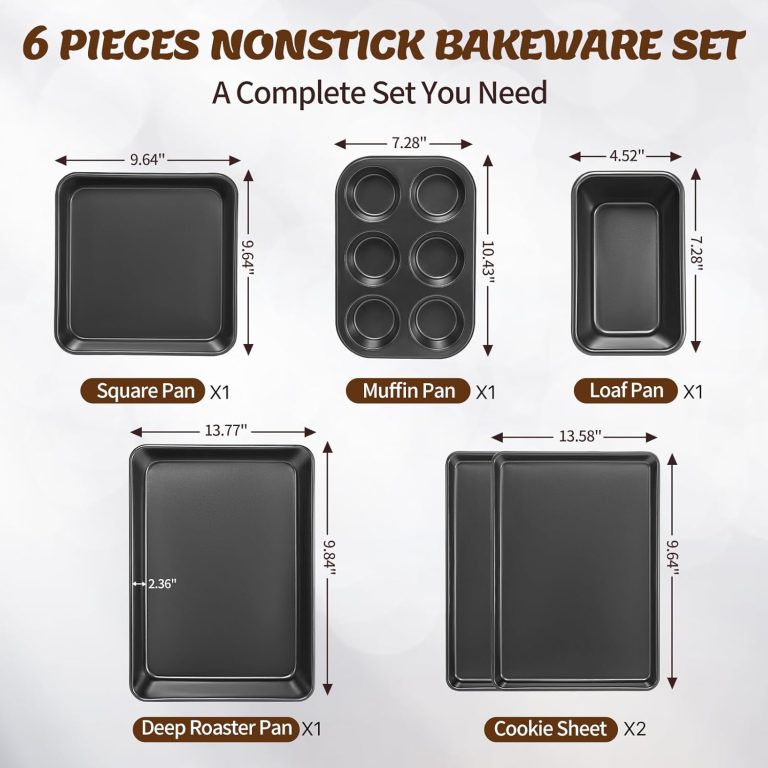$31.10Baking Pans Set, Nonstick Bakeware Sets, Oven Pans for Cooking, 6 Pieces Baking Sheets Set Including Cookie Sheet, Deep Roaster Pan, Square Pan, Loaf Pan, Muffin Pan, Carbon Steel Baking Set